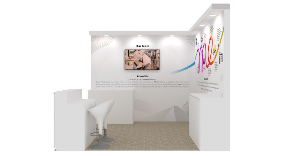 บูธของ Mega Productions ถูกออกแบบมาให้เหมาะกับพื้นที่มาตรฐานในงาน Exhibition โดยมีขนาดหลักที่ได้รับความนิยม ได้แก่