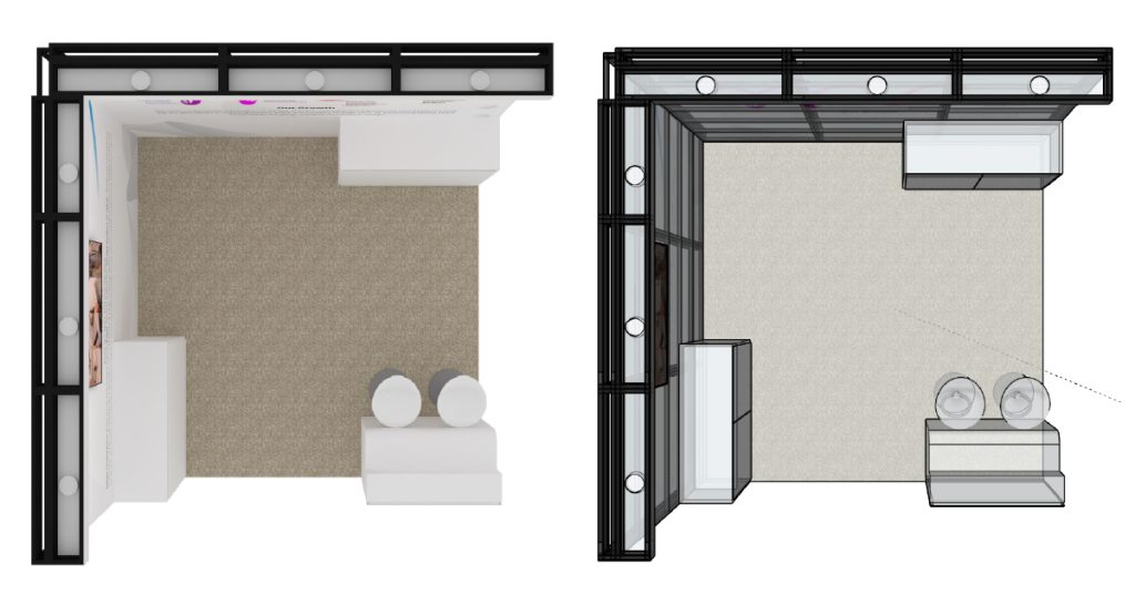 เหมาะสำหรับธุรกิจที่ต้องการพื้นที่นำเสนอมากขึ้น รองรับการจัดวางสินค้า พื้นที่พูดคุยลูกค้า หรือกิจกรรมโปรโมชันภายในบูธ